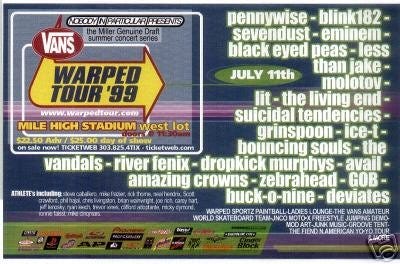 The summer of ‘99 I attended my first Warped Tour music festival at Phoenix Plaza Amphitheater. Or rather, the parking lot of Phoenix Plaza Amphitheater. The lineup looked like this:
